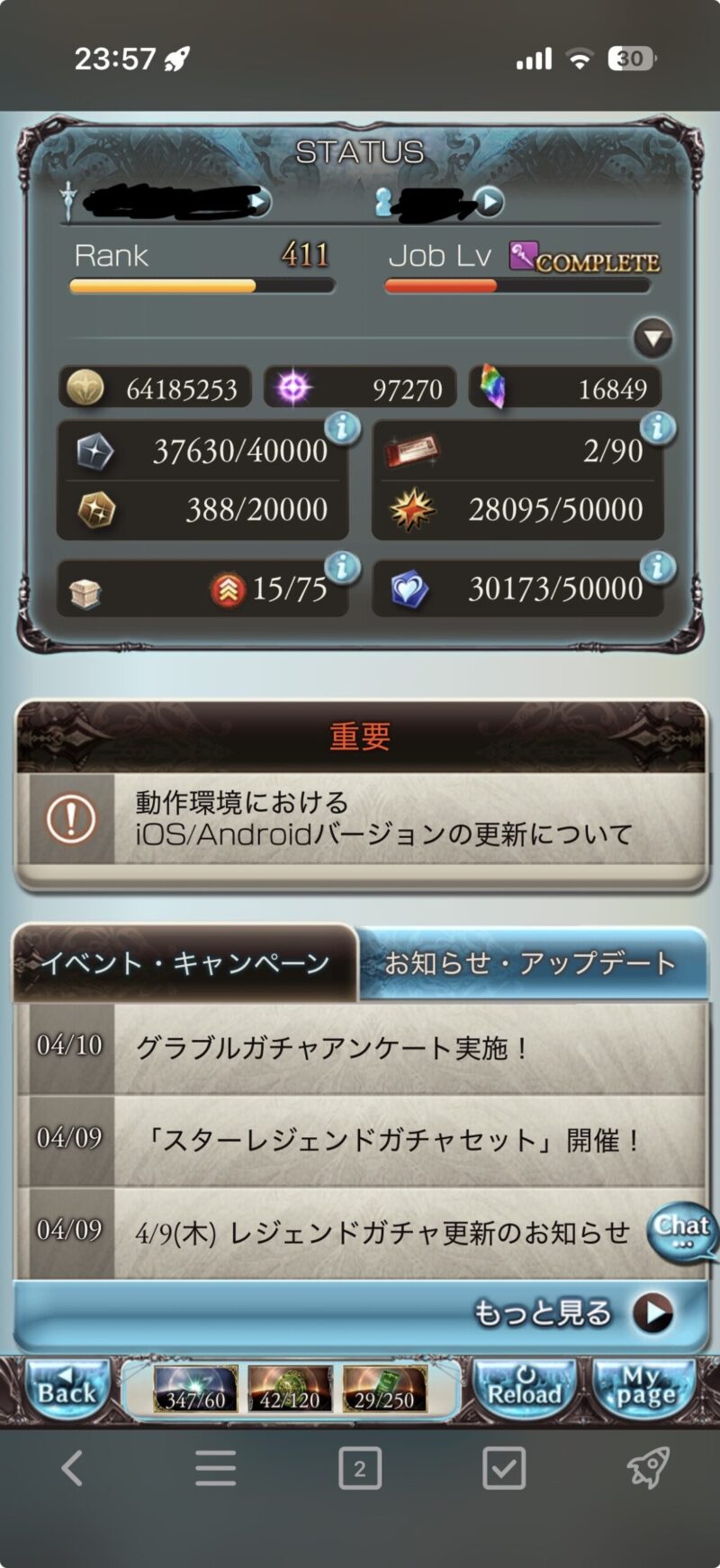 4月12日現在のプレイ状況を報告します。