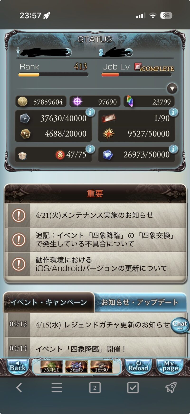 4月17日現在のプレイ状況を報告します。